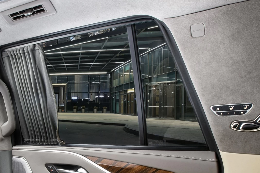 Еще больше комфорта в салоне обеспечит установка тканевых шторок с электроприводом. Управление открытием и закрытием шторок осуществляется с кнопок, размещенных в боковых панелях салона.
