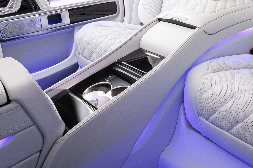 В эксклюзивном салоне автомобиля продумано все до мелочей: у каждой вещи свое место. Так, для комфортного размещения стаканов с напитками предусмотрены подстаканники с функцией подогрева или охлаждения.