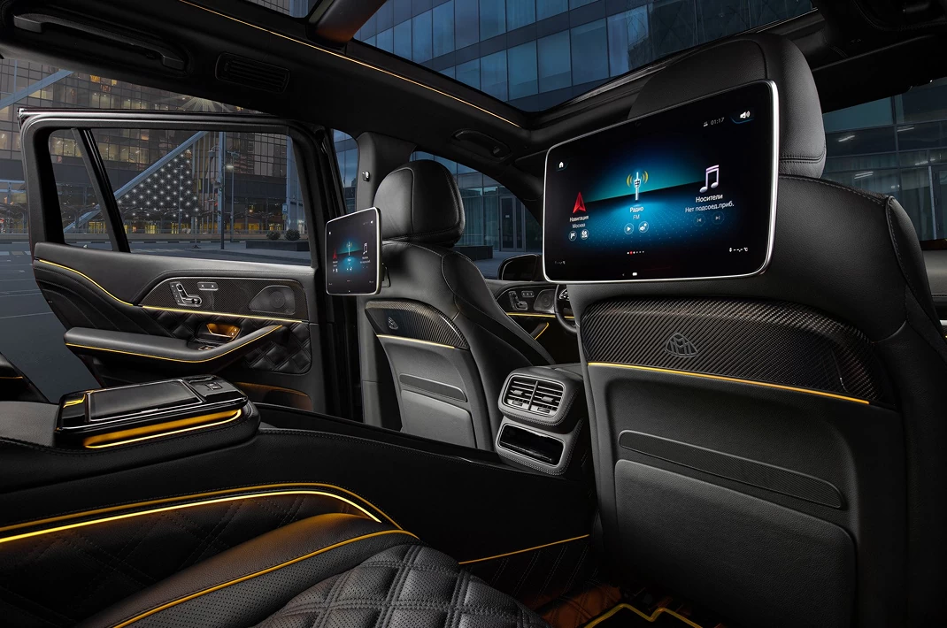 Идеальный комфорт во время каждой поездки создают столики Maybach, которые можно использовать для просмотра документов, употребления пищи или работы на мобильных устройствах и планшетах.