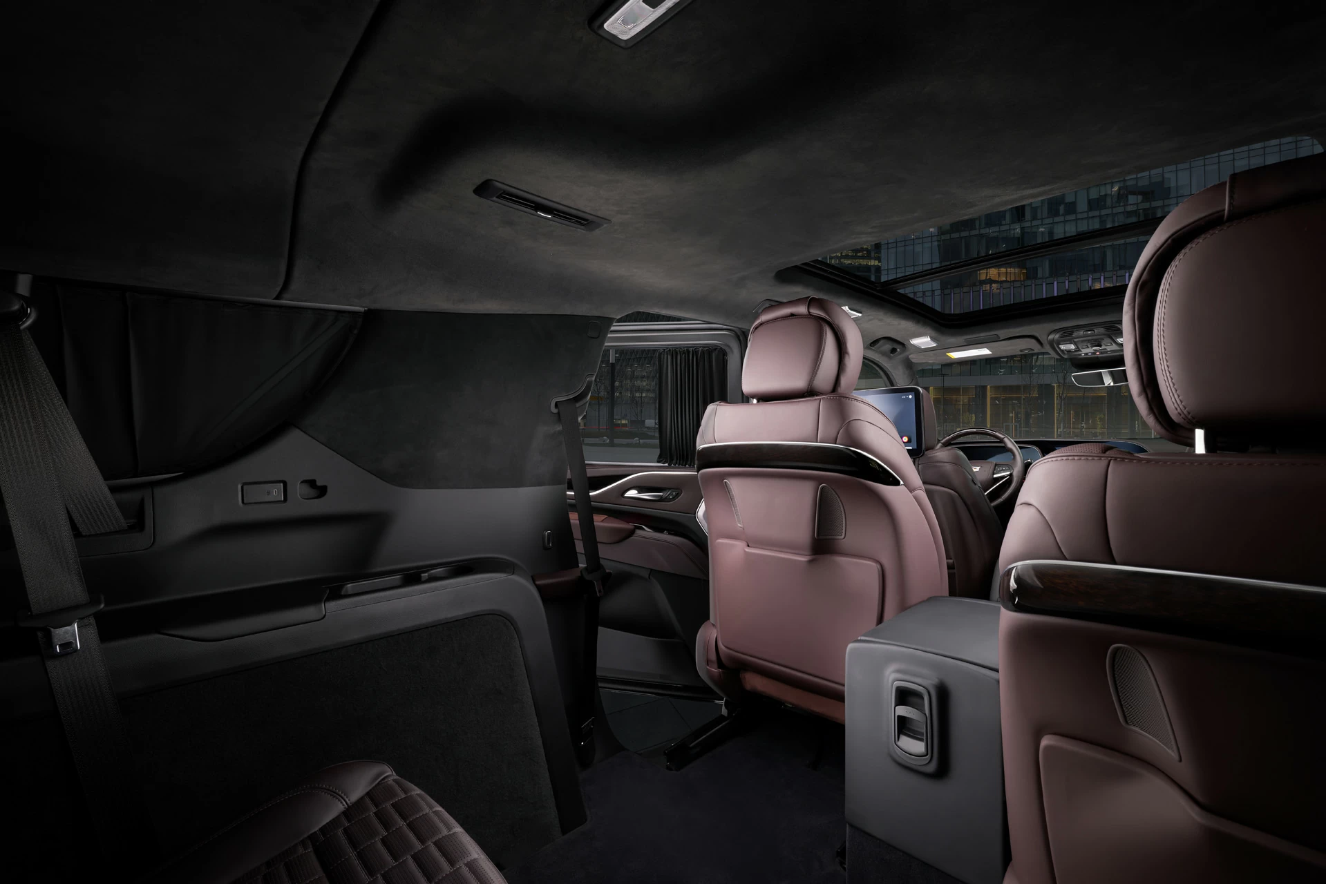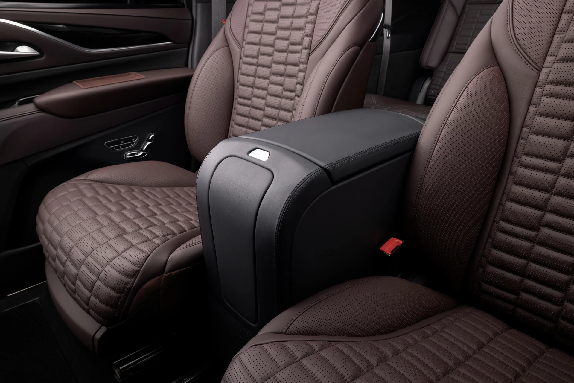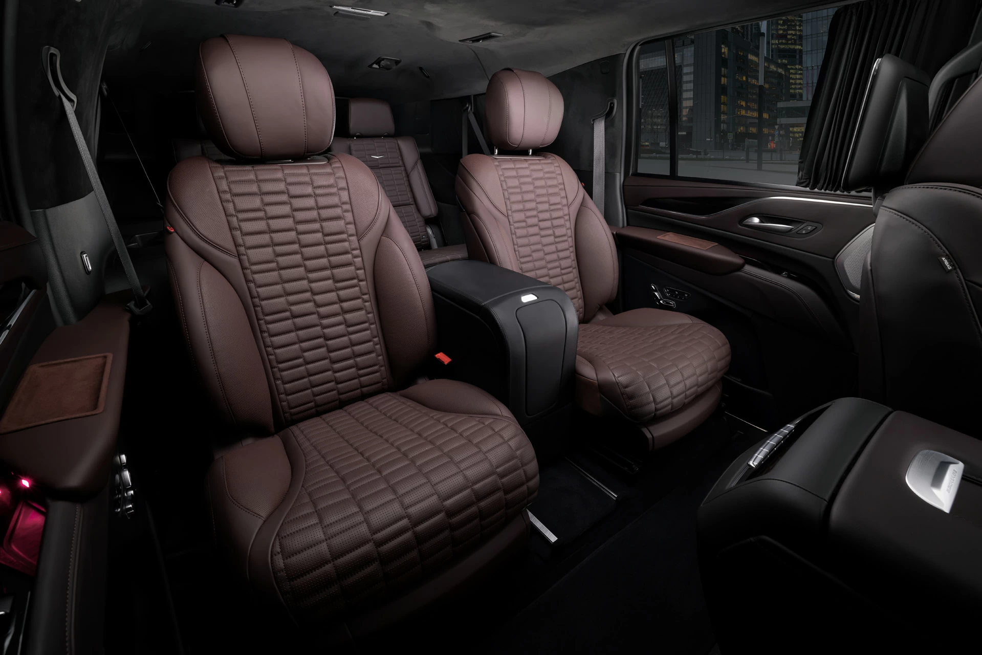 В рамках этого проекта, мы установили капитанские кресла Mercedes-Benz на третий ряд в Cadillac Escalade, добавив уровень комфорта, обычно ассоциируемый с премиум классом. Также был установлен карбоновый аэродинамический комплект А1, что придало автомобилю более спортивный и динамичный вид.