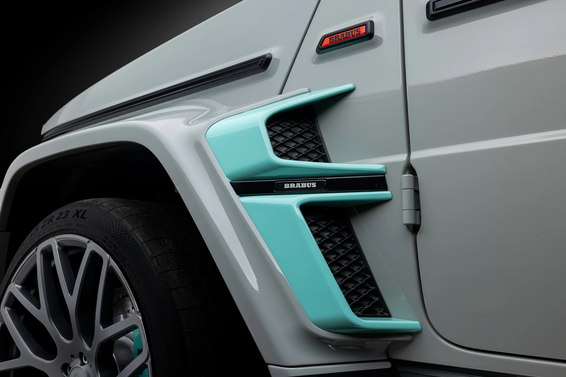 Для улучшения аэродинамических характеристик и придания автомобилю динамичного вида установлен аэродинамический комплект BRABUS. Этот комплект не только улучшает обтекаемость, но и подчеркивает спортивный характер автомобиля.