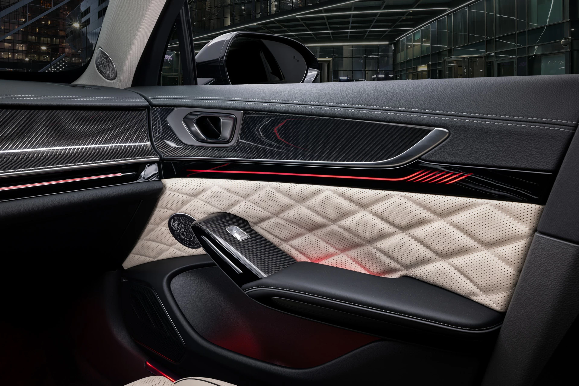Дверные вставки также подверглись частичному перешиву, добавляя изысканности и стиля в общий дизайн интерьера автомобиля. Этот проект для Hongqi HS9 — это идеальное сочетание премиальных материалов и мастерства, создающее атмосферу уюта и эксклюзивности.
