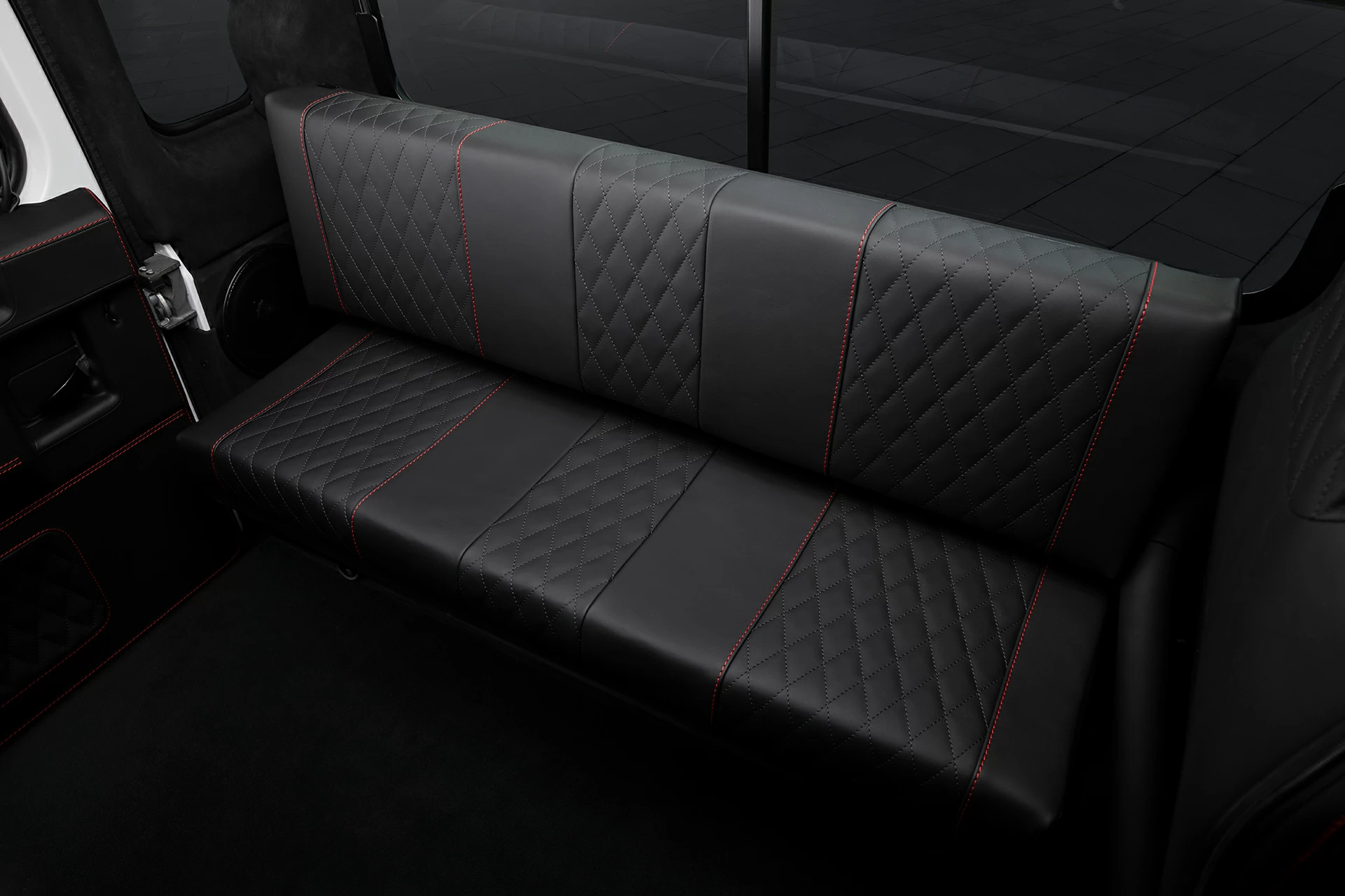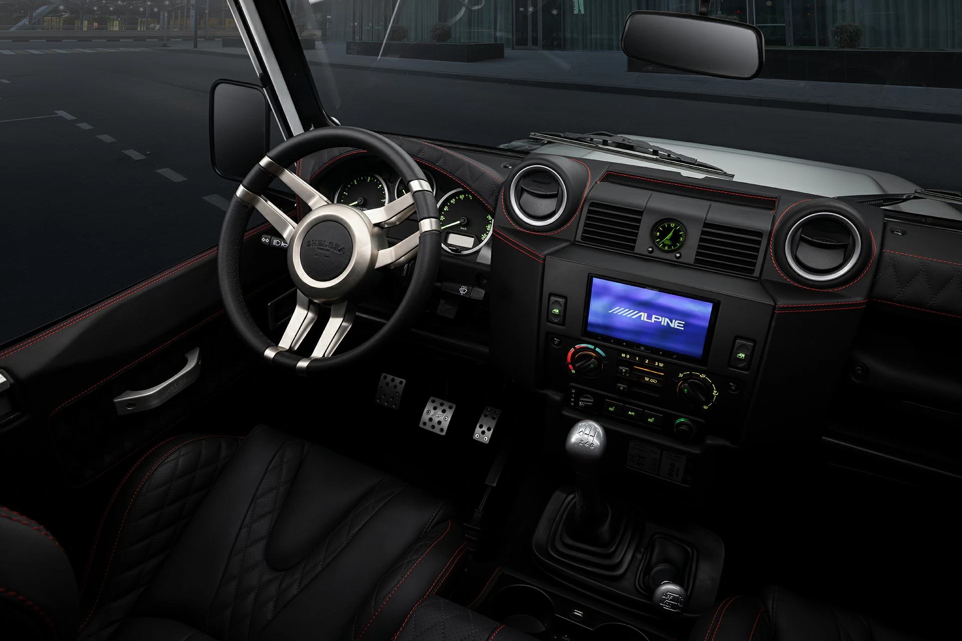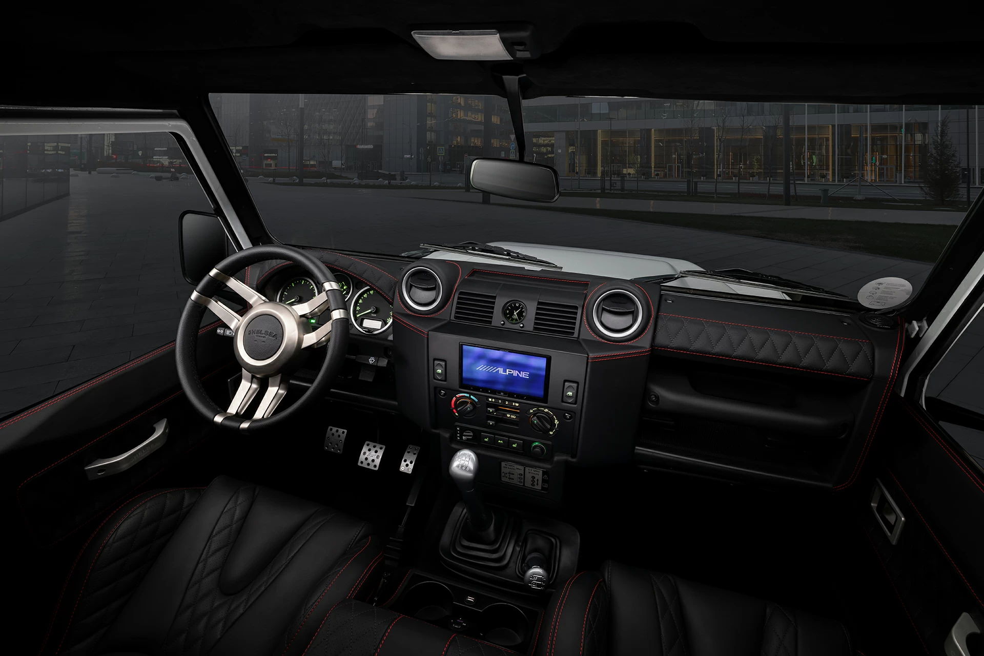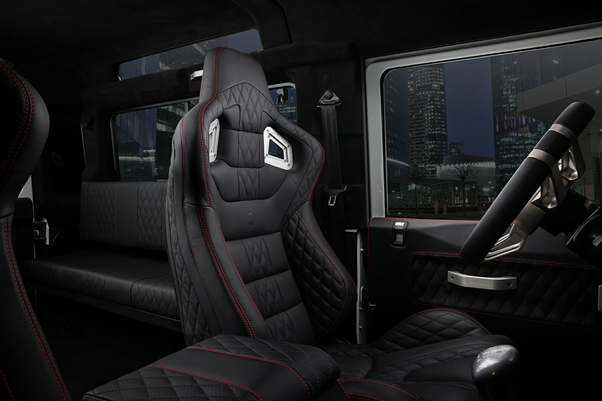 В интерьере выполнен полный перешив: торпедо, дверные карты, борта, потолок — всё в чёрной коже высшей категории с безупречной подгонкой и тактильной эстетикой. Установлены оригинальные кресла Chelsea Truck Company и премиальная акустическая система — комфорт и звук на уровне топовых лайнеров. Снаружи — оригинальный обвес Chelsea Truck, фирменные элементы, подчёркивающие характер Defender. Внешний вид — чёрный кузов, чёрные акценты, чёрная мощь. Всё собрано в единую концепцию: строго, стильно, максимально персонализировано. Этот Defender не похож ни на один другой — он создан для тех, кто ценит брутальность и эксклюзив.