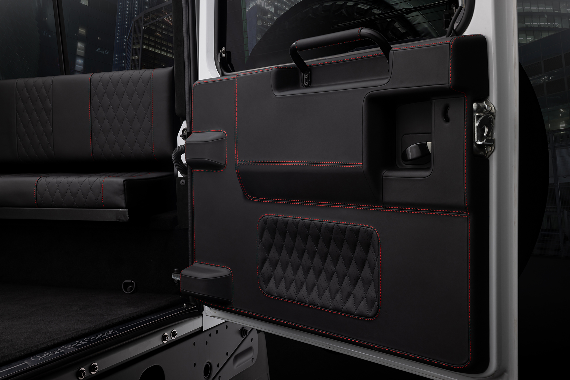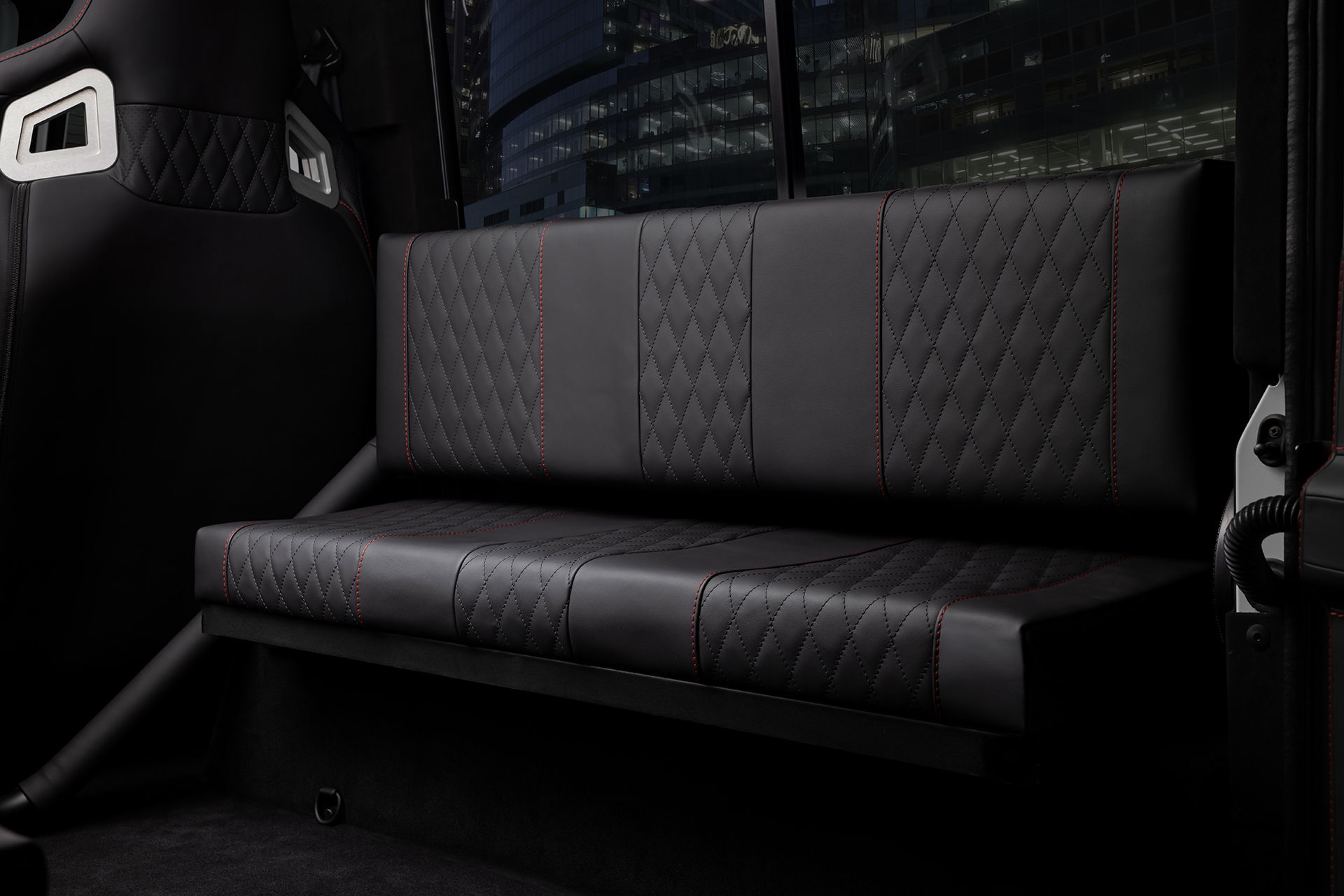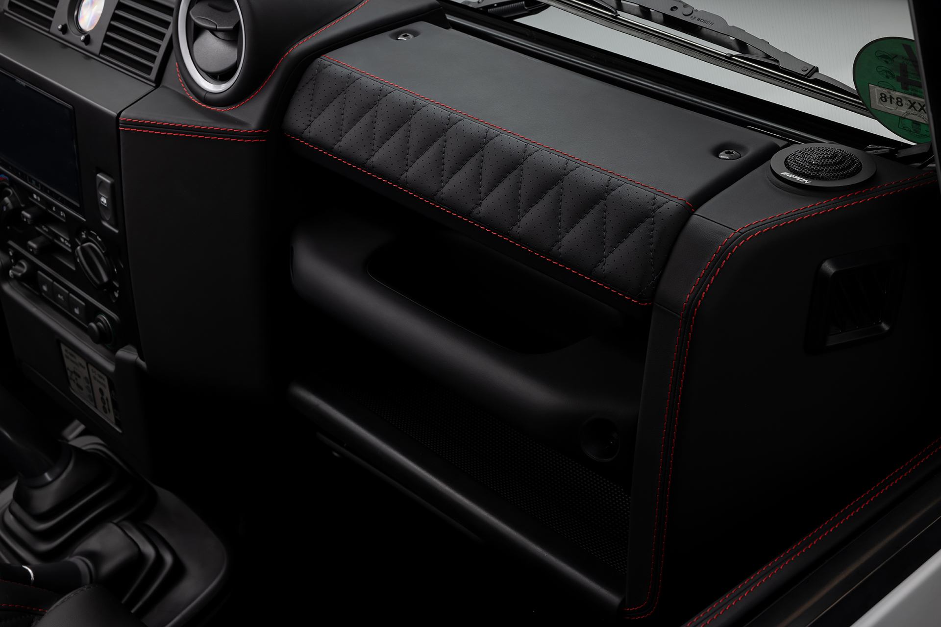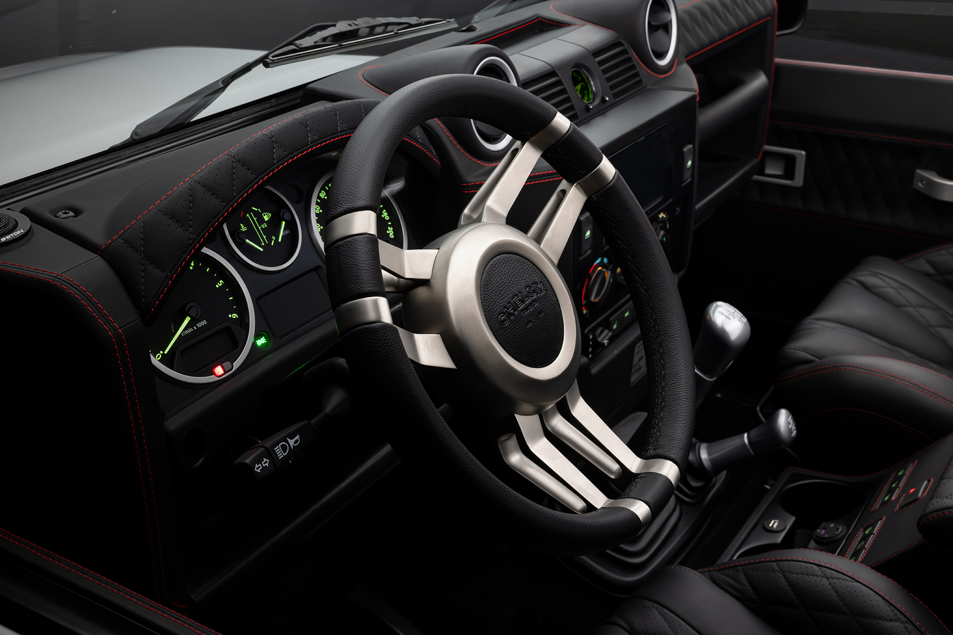 В интерьере выполнен полный перешив: торпедо, дверные карты, борта, потолок — всё в чёрной коже высшей категории с безупречной подгонкой и тактильной эстетикой. Установлены оригинальные кресла Chelsea Truck Company и премиальная акустическая система — комфорт и звук на уровне топовых лайнеров. Снаружи — оригинальный обвес Chelsea Truck, фирменные элементы, подчёркивающие характер Defender. Внешний вид — чёрный кузов, чёрные акценты, чёрная мощь. Всё собрано в единую концепцию: строго, стильно, максимально персонализировано. Этот Defender не похож ни на один другой — он создан для тех, кто ценит брутальность и эксклюзив.