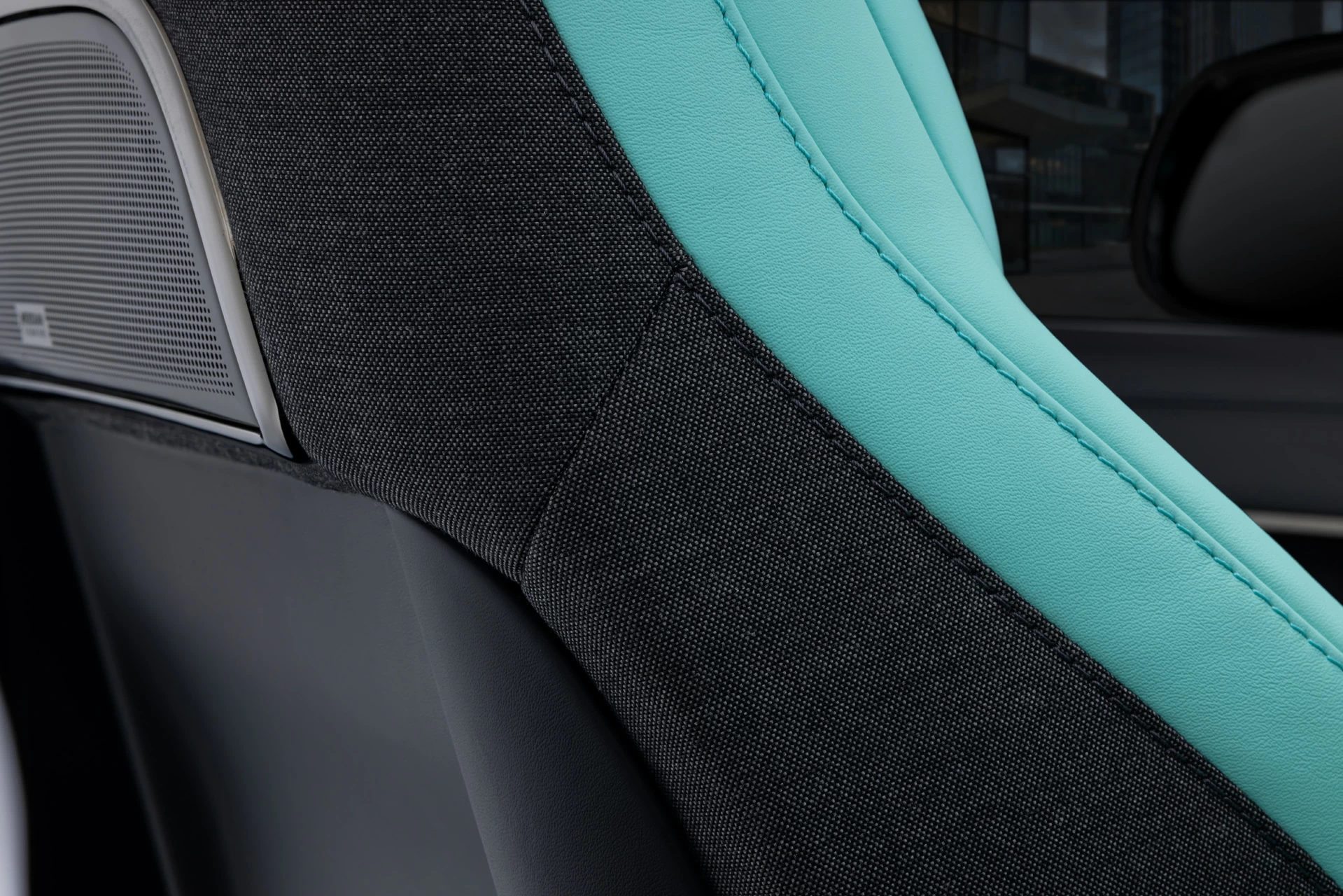 Основное внимание было уделено передней части салона, где мы использовали высококачественные материалы и безупречные технологии перешива. Цветовая палитра Tiffany, известная своей свежестью и изысканностью, добавила интерьеру автомобиля особый шарм и стиль. Каждый элемент был тщательно проработан, чтобы обеспечить гармонию и комфорт, соответствующие высоким стандартам наших клиентов.