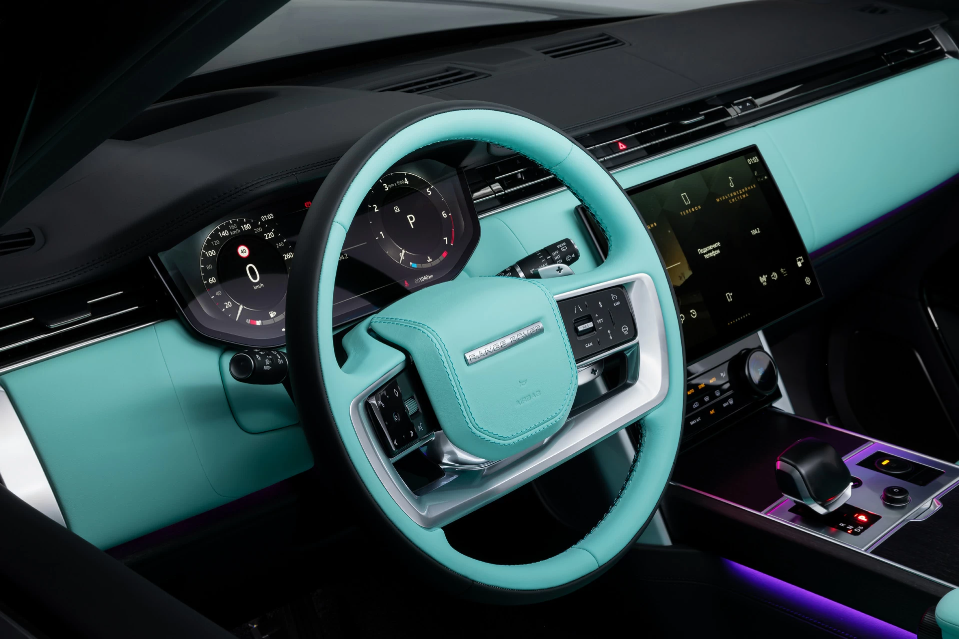 В рамках проекта по созданию уникального интерьера для Range Rover SV наша команда реализовала перешив салона в изысканных цветах Tiffany. Этот проект стал воплощением элегантности и утонченности, подчеркивая премиальный статус автомобиля.