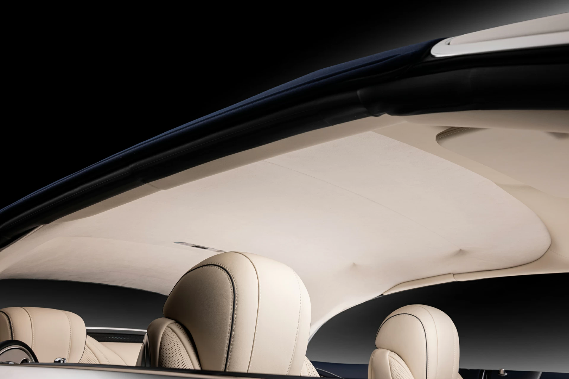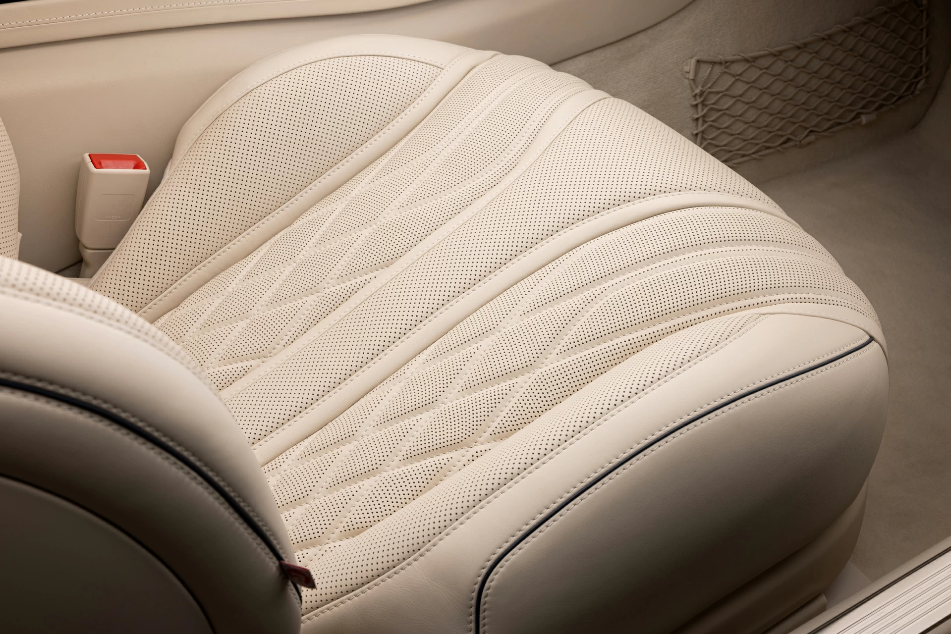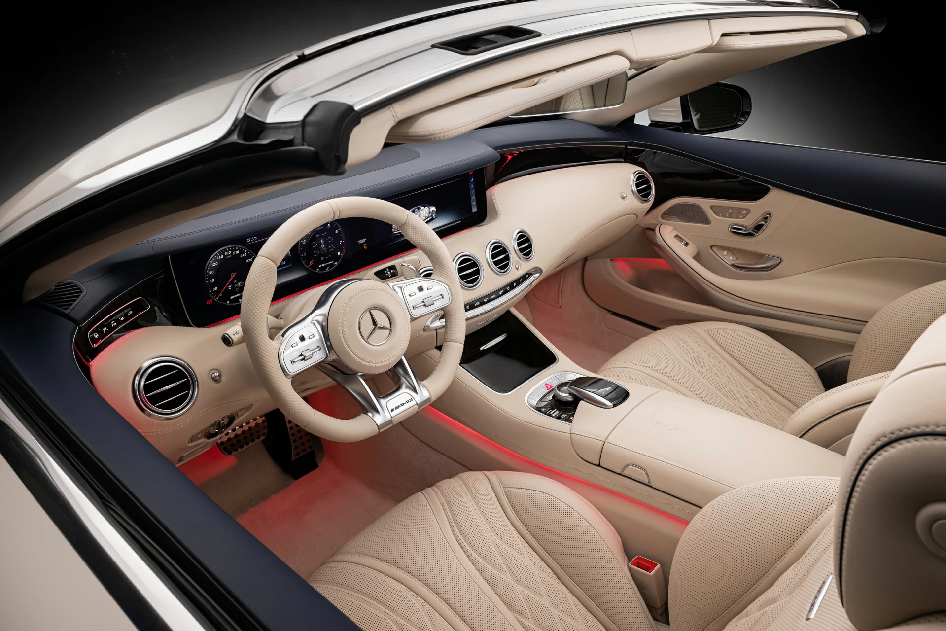 Перед вами уникальное воплощение стиля и технологичности — премиальный кабриолет Mercedes-Benz S-Class с полностью обновлённым интерьером. Мы выполнили полный перешив салона в светло-бежевой коже с изысканным тиснением, гармонично сочетающейся с тёмными акцентами и оригинальной контурной подсветкой.