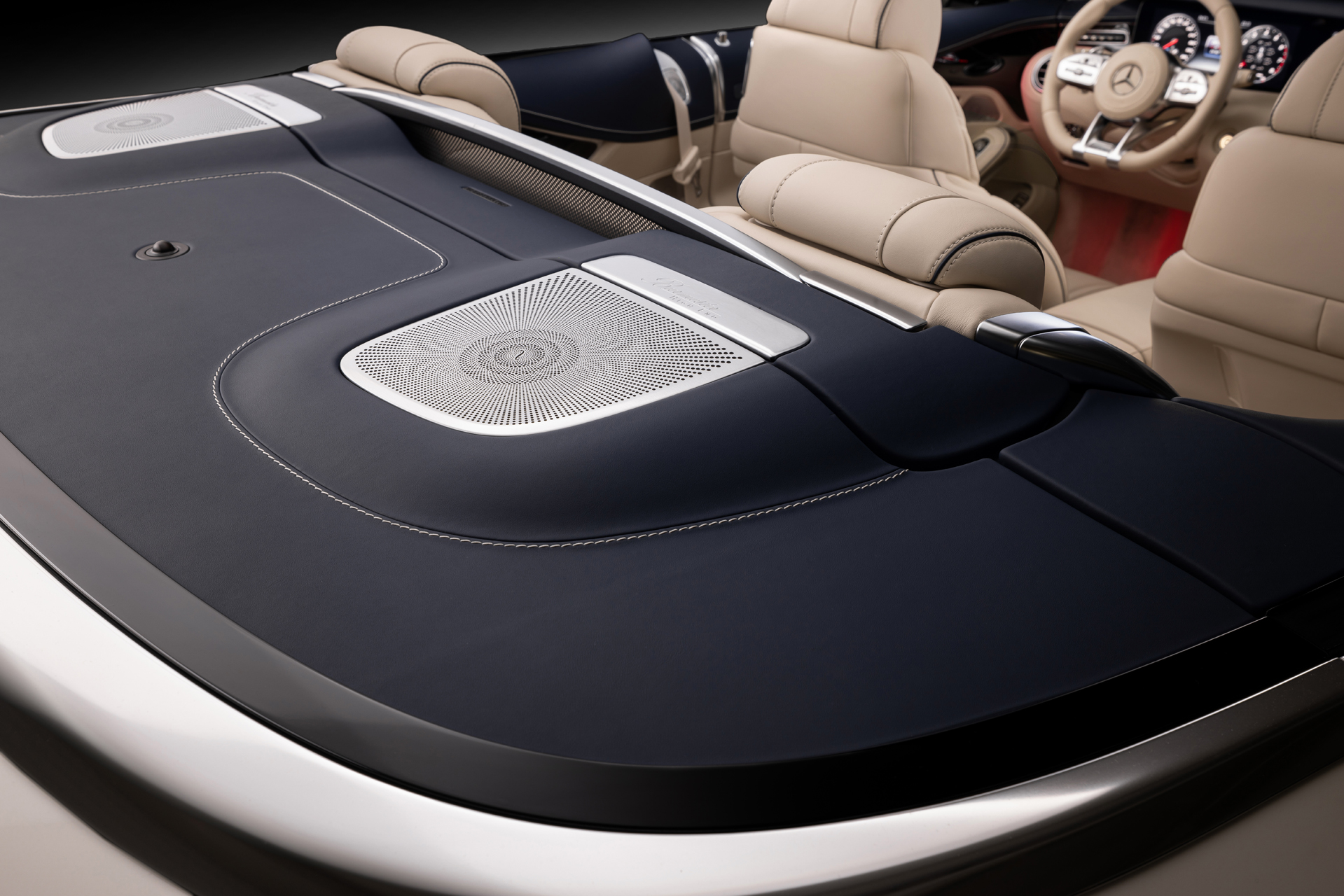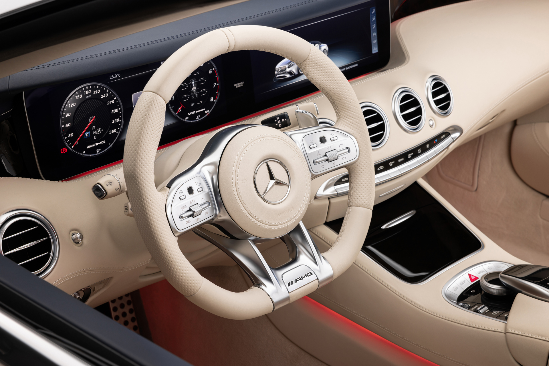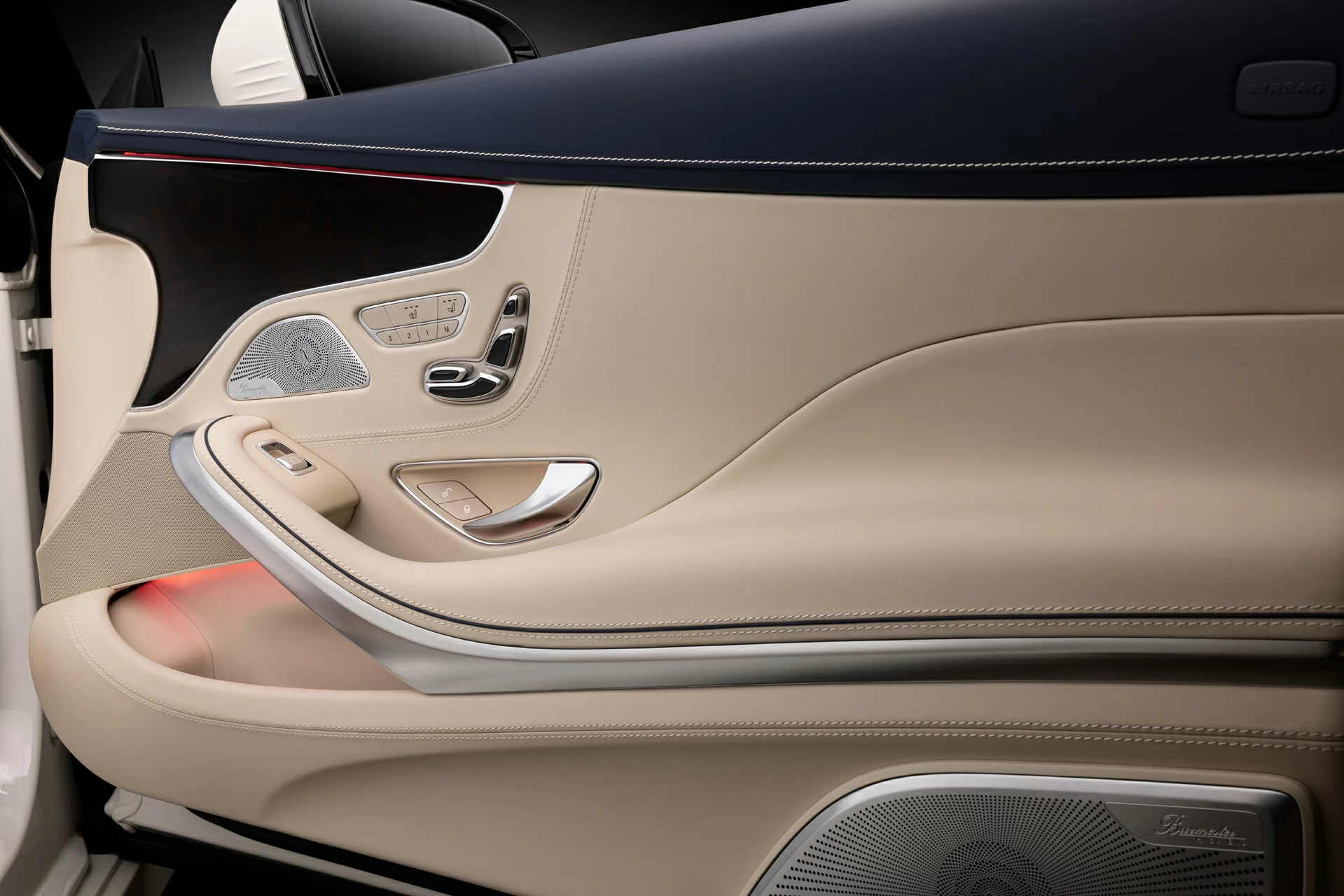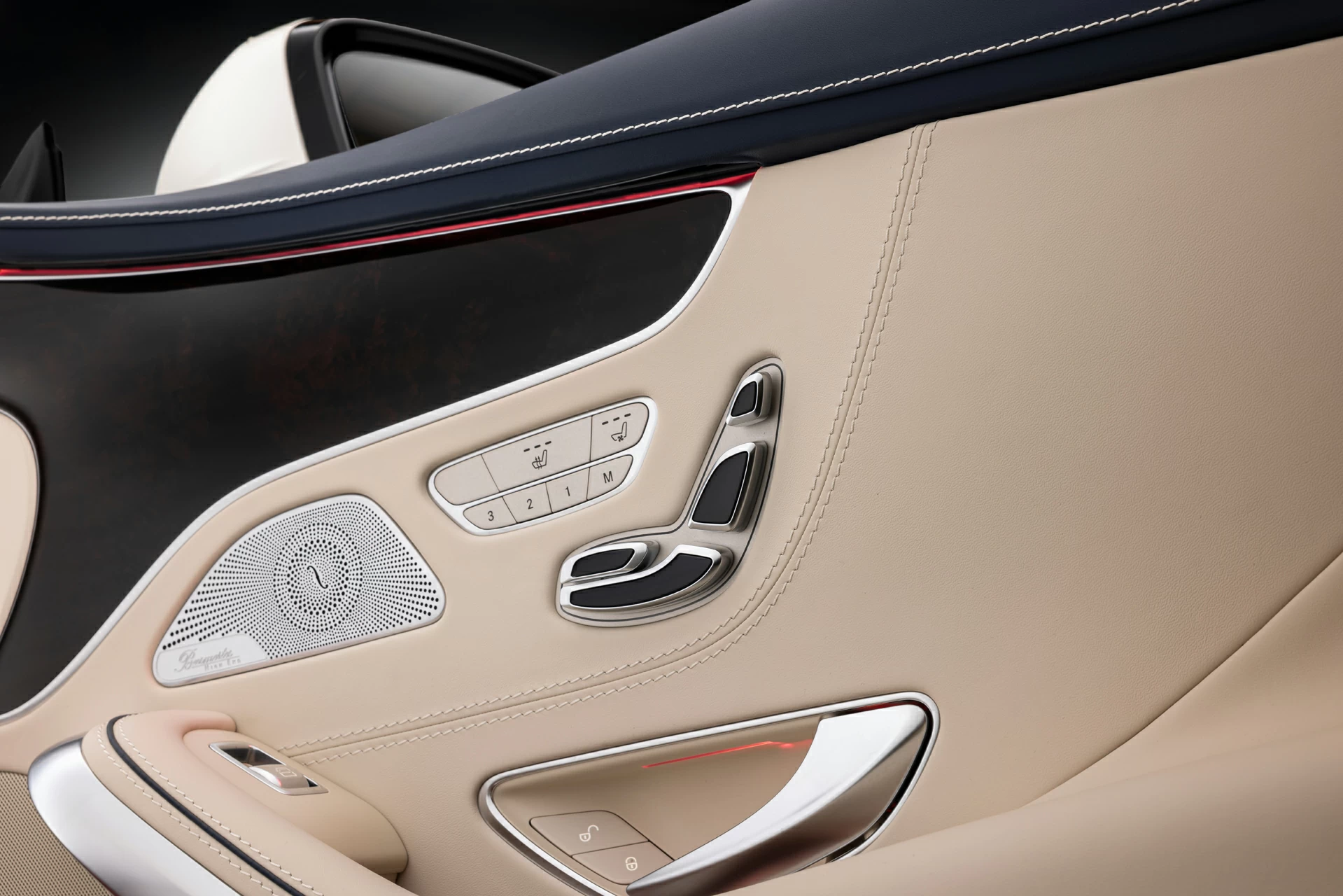 Перед вами уникальное воплощение стиля и технологичности — премиальный кабриолет Mercedes-Benz S-Class с полностью обновлённым интерьером. Мы выполнили полный перешив салона в светло-бежевой коже с изысканным тиснением, гармонично сочетающейся с тёмными акцентами и оригинальной контурной подсветкой.