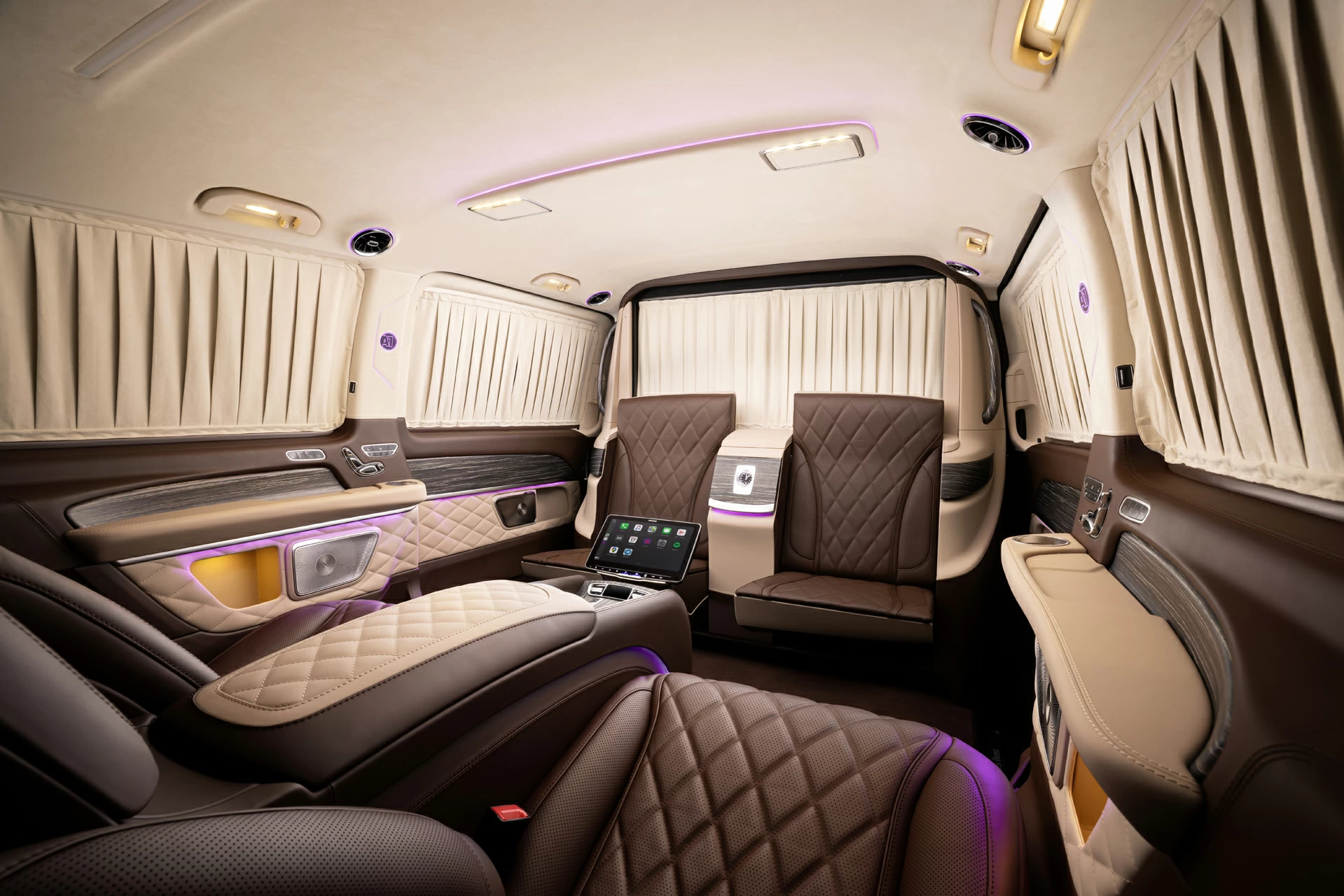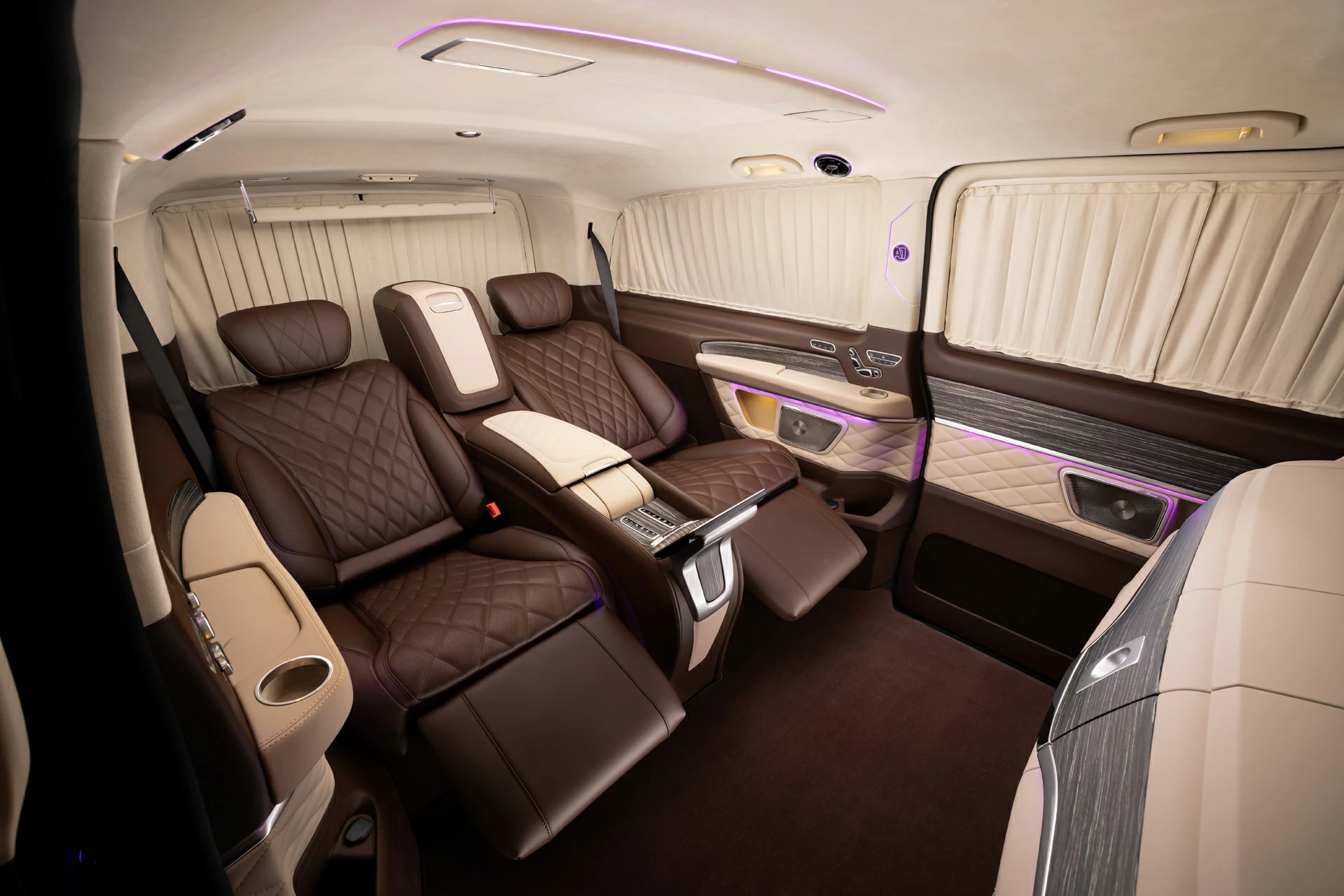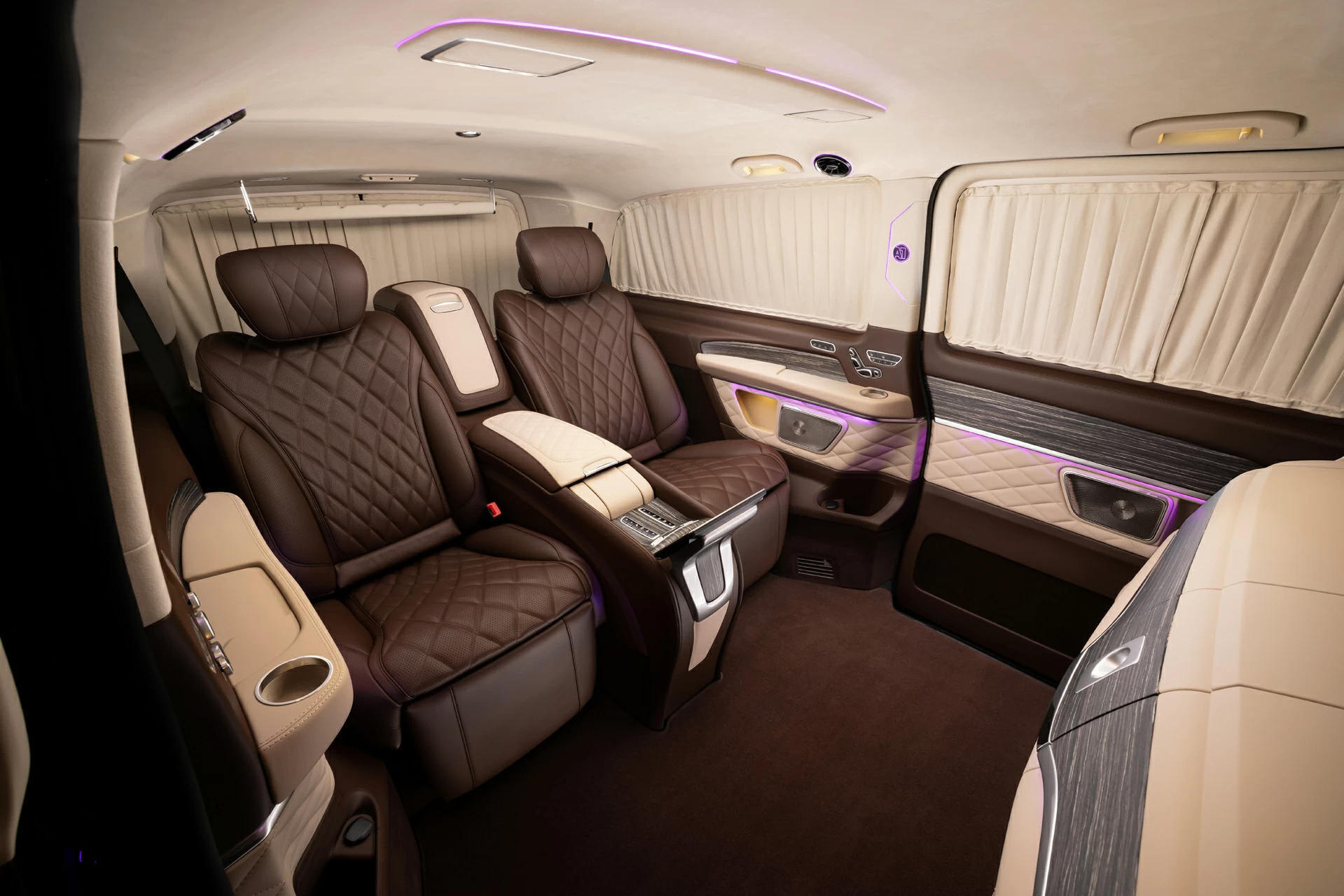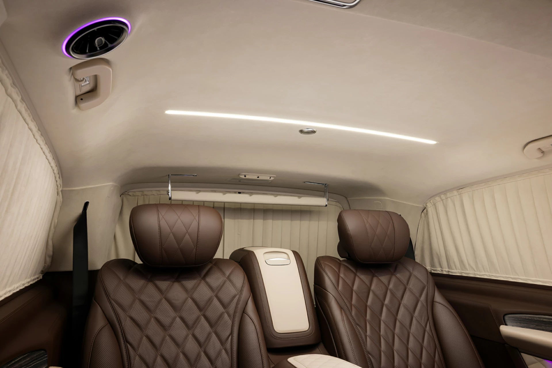 Проект в комплектации V-VIP от А1 АВТО — это воплощение высшего уровня комфорта и эстетики в кузове Mercedes-Benz V-Class. Мы создали эксклюзивный интерьер с акцентом на статус и премиальность, используя изысканное сочетание кожи кофейного и бежевого оттенков. Интерьер оформлен с предельной точностью: раздельный узел в стиле Mercedes-Maybach, межсалонная перегородка с интеграцией мультимедийных решений, декоративные вставки, продуманная подсветка — всё подчинено идее уединения, комфорта и высокого вкуса.
