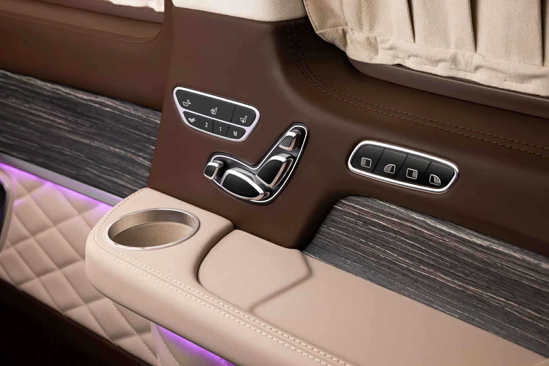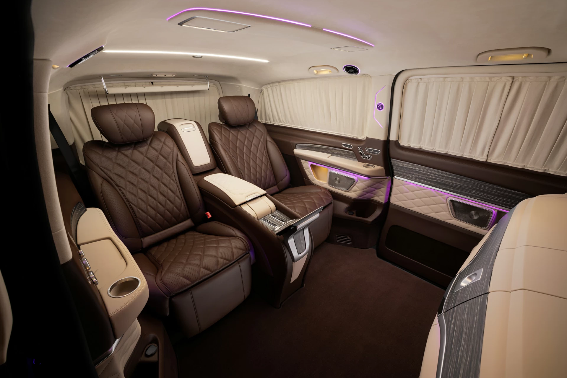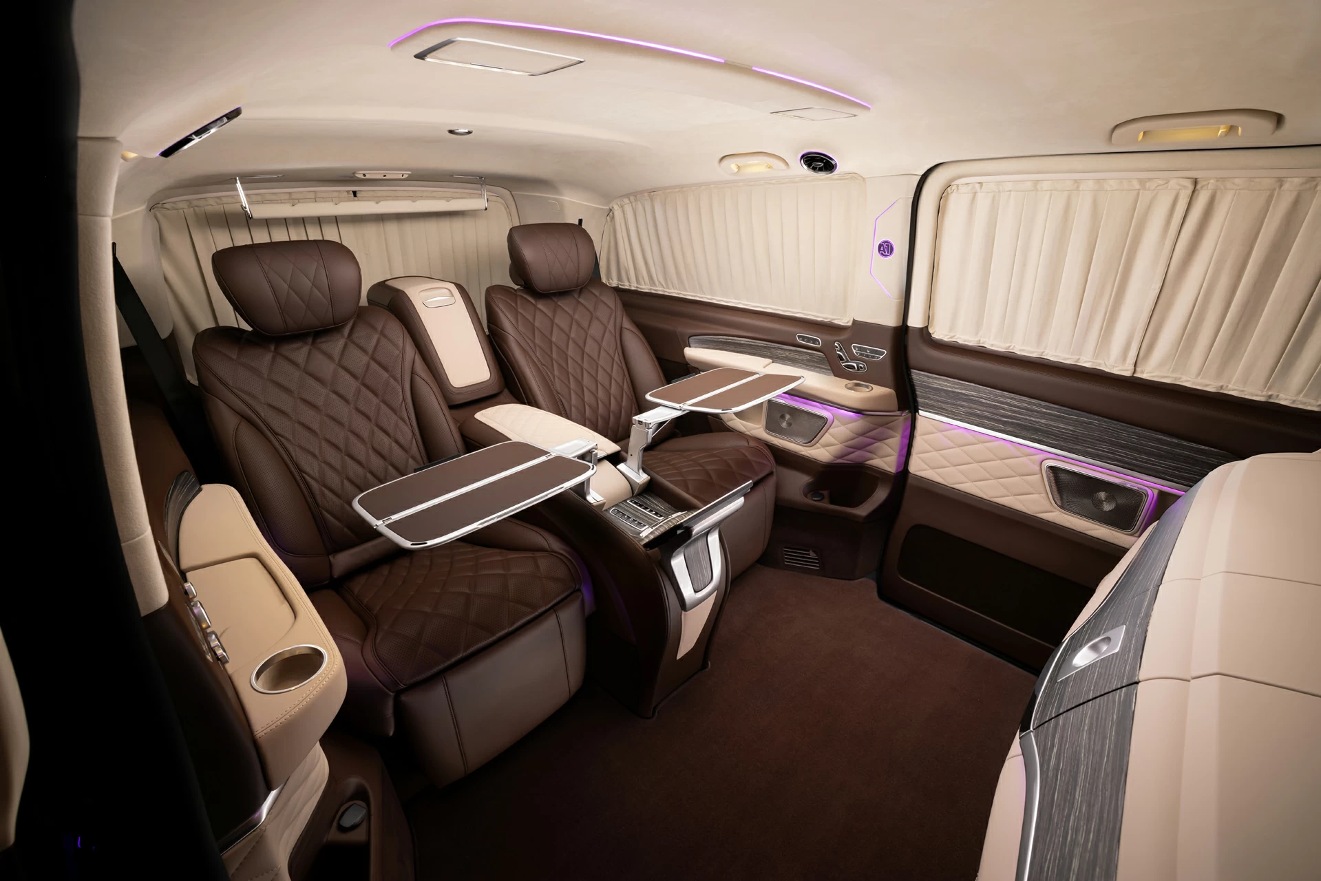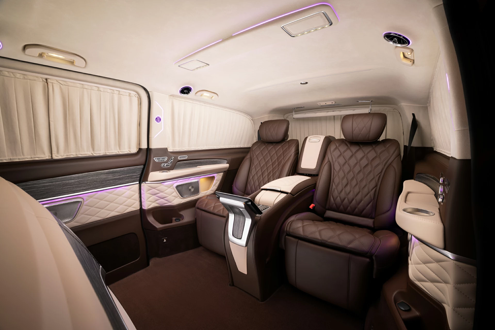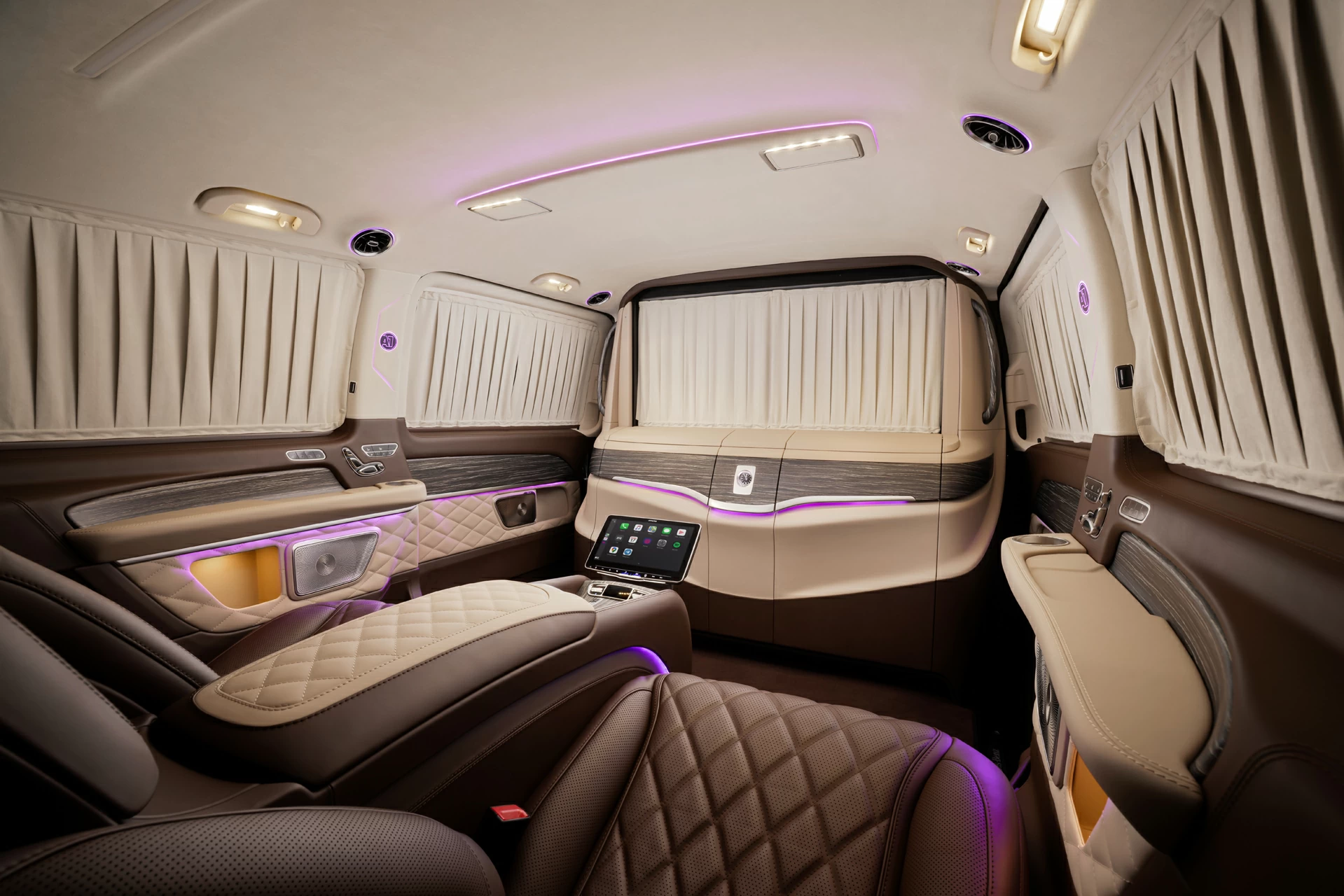 Проект в комплектации V-VIP от А1 АВТО — это воплощение высшего уровня комфорта и эстетики в кузове Mercedes-Benz V-Class. Мы создали эксклюзивный интерьер с акцентом на статус и премиальность, используя изысканное сочетание кожи кофейного и бежевого оттенков. Интерьер оформлен с предельной точностью: раздельный узел в стиле Mercedes-Maybach, межсалонная перегородка с интеграцией мультимедийных решений, декоративные вставки, продуманная подсветка — всё подчинено идее уединения, комфорта и высокого вкуса.