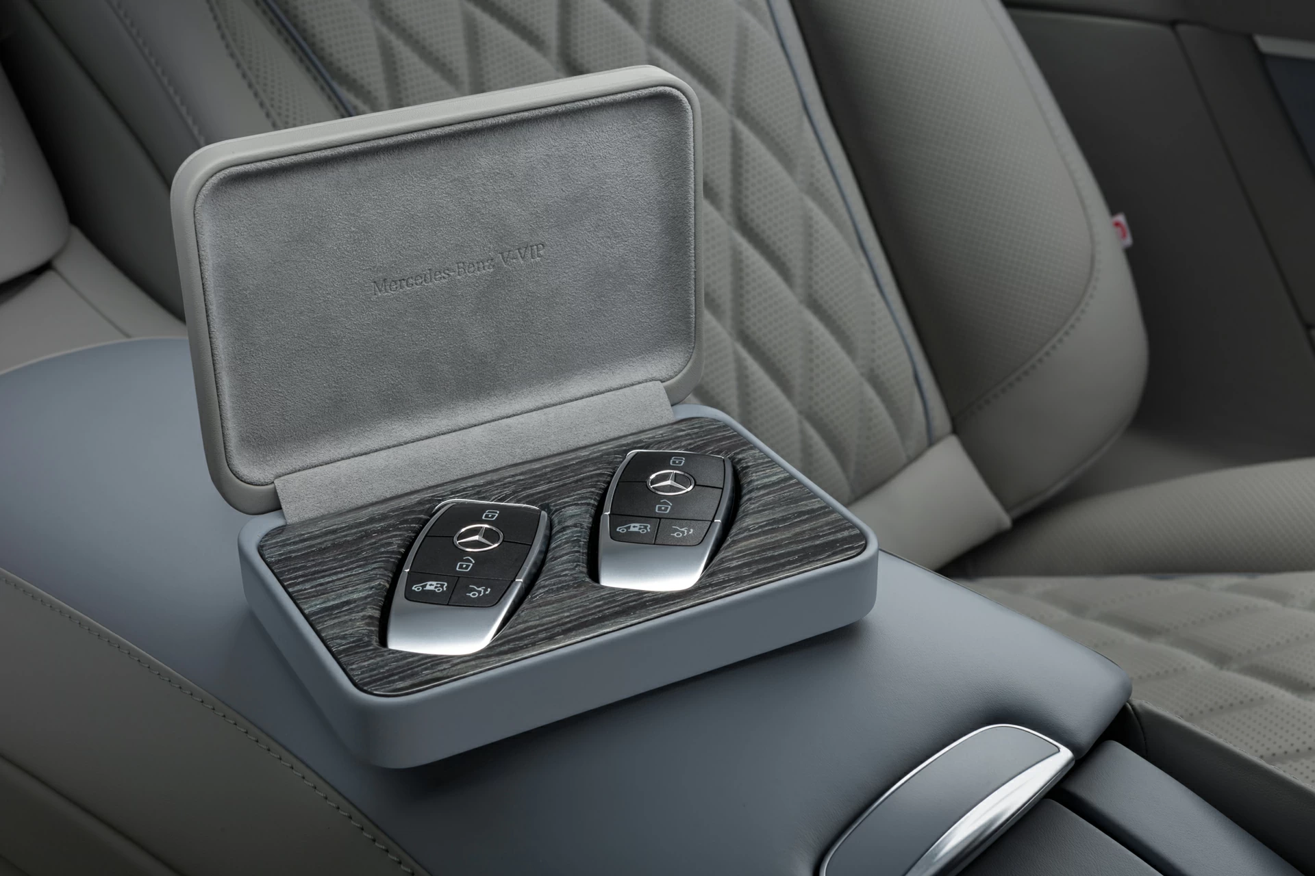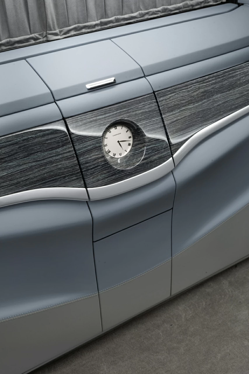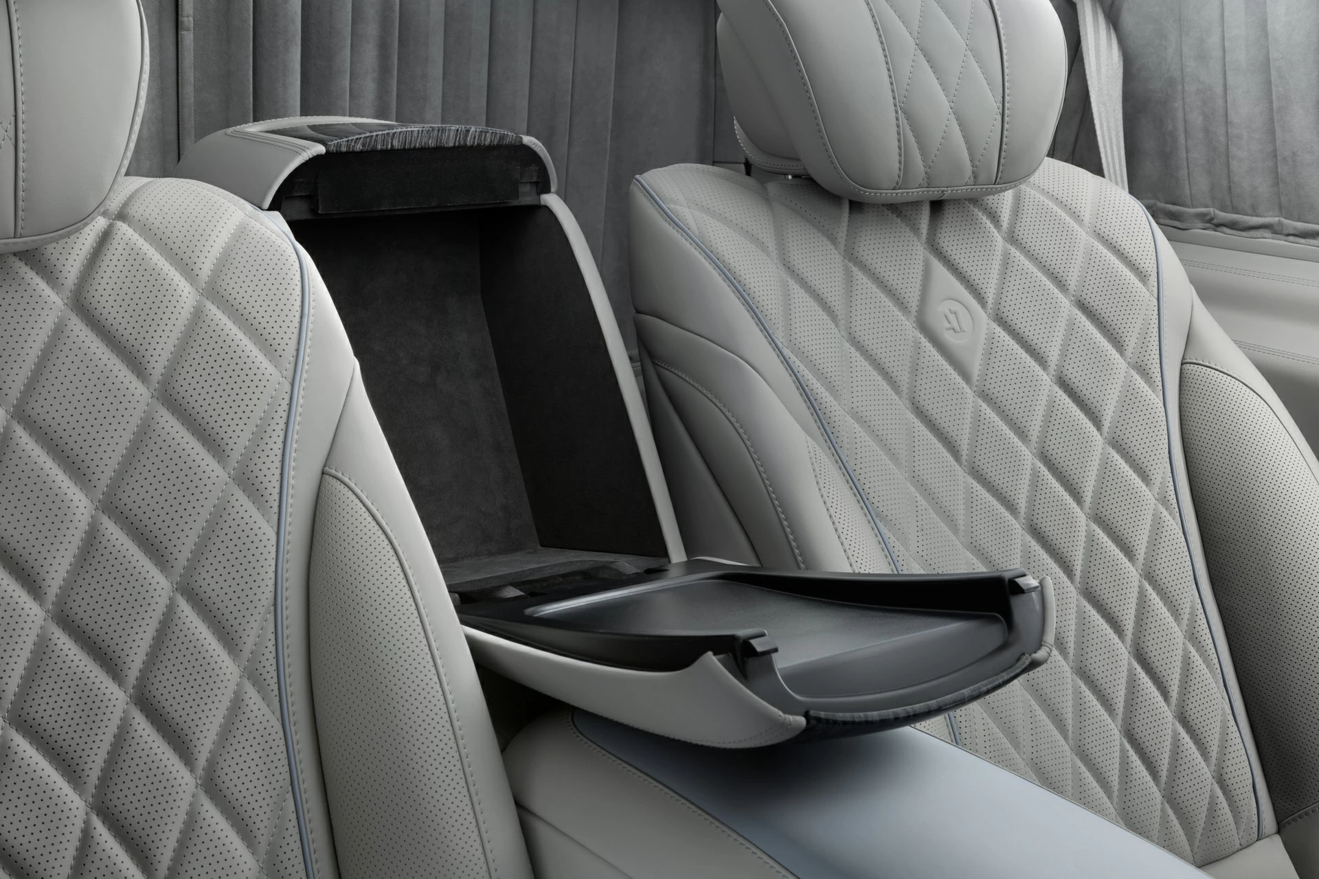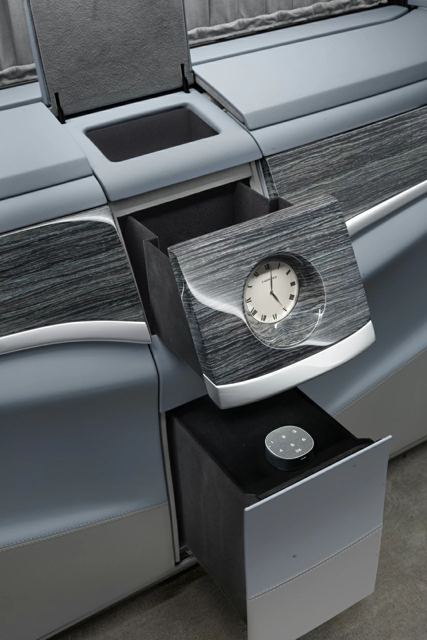 Этот проект — про тишину, комфорт и внимание к каждой детали. Комплектация V-VIP от А1 АВТО создавалась не для вау-эффекта — она про зрелую эстетику, в которой всё подчинено ощущению внутреннего покоя. Серо-голубой оттенок кожи стал сердцем интерьера: он не доминирует, не бросается в глаза — он окружает, создаёт обволакивающее ощущение мягкой среды, где всё под контролем. Внутри — капитанские кресла, межсалонная перегородка, фирменный узел в стиле Maybach, потолок с системой "звёздное небо", который особенно красиво смотрится именно в тандеме с холодными тонами интерьера.