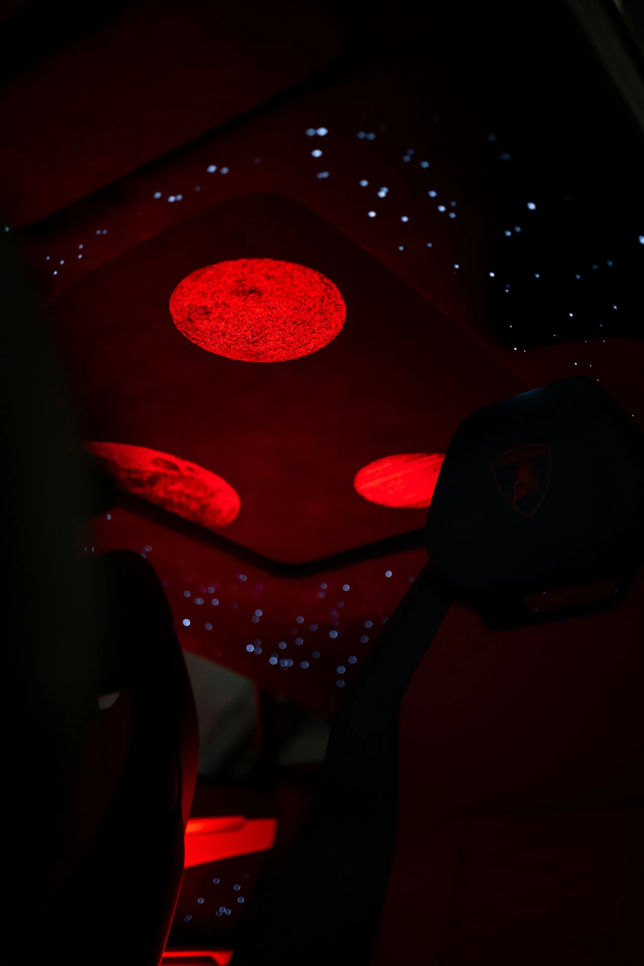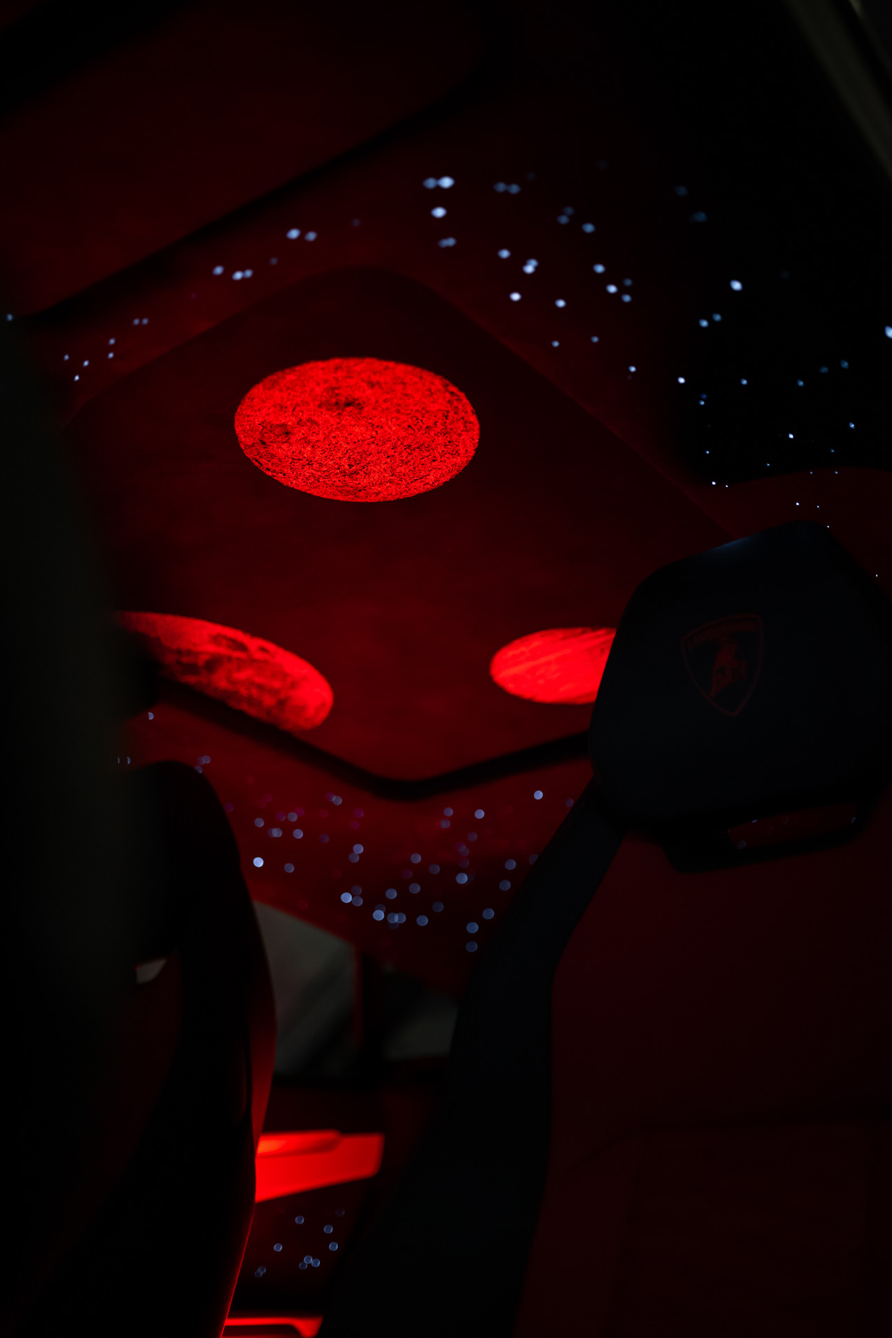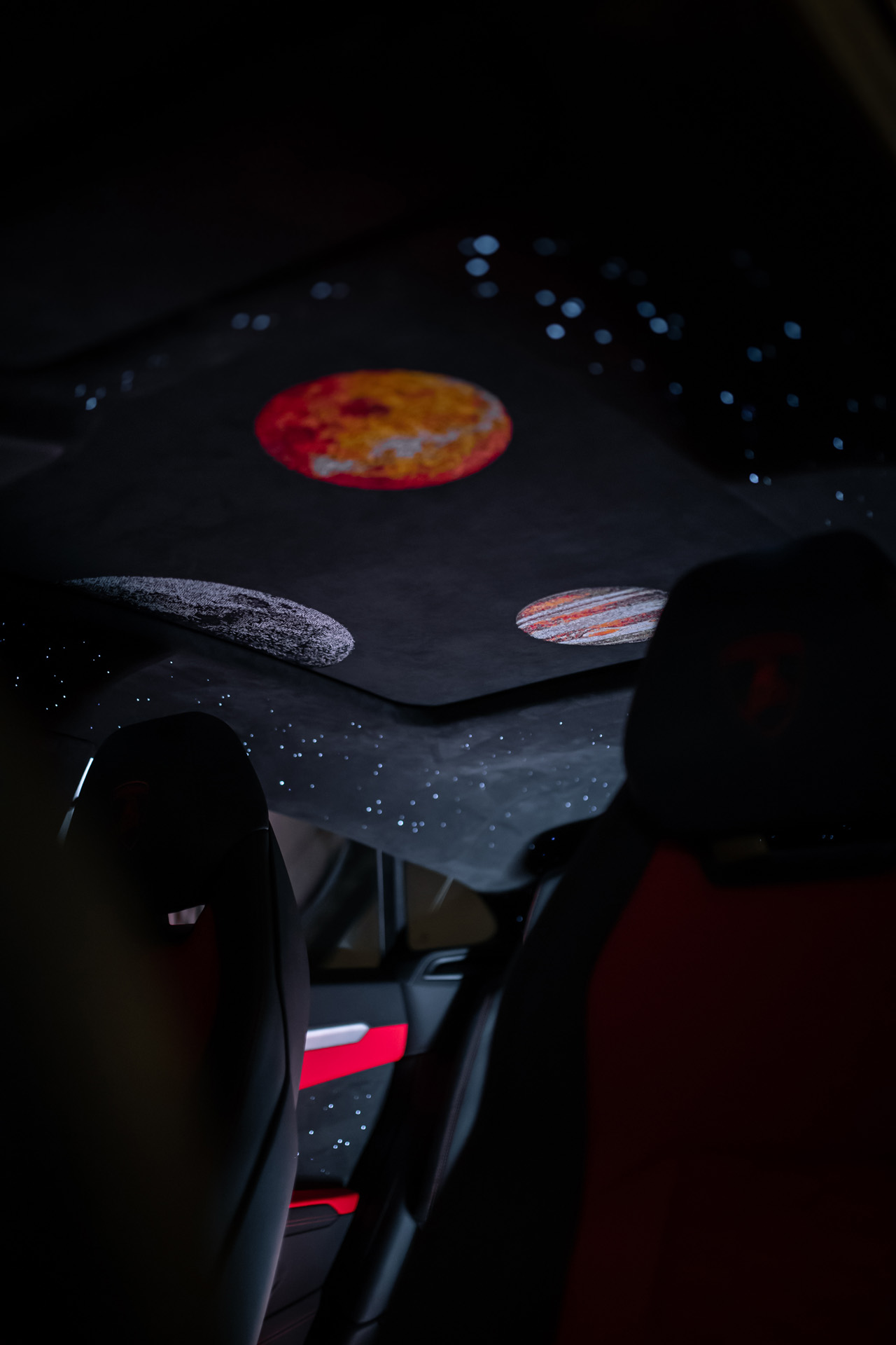 Мы установили уникальную оптоволоконную подсветку с эффектами звёзд, движущихся комет и планет. Визуальная глубина, динамика свечения и идеальная интеграция в потолок позволили сохранить эстетический баланс агрессивного супер-SUV и премиального салона.